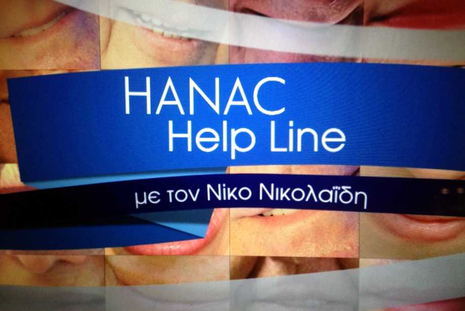 HANAC HELP LINE is a half an hour Live audience interactive once a week morning show on Sunday's 6:30 pm on New Greek TV offering various help programs from HANAC and catering to questions, problems and assistance for the senior citizens of our Hellenic Community.